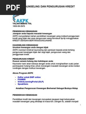 Akpk agensi kaunseling dan pengurusan kredit provides financial education materials on the proper use of credit and basic money management as well as tips on how to use credit responsibly.