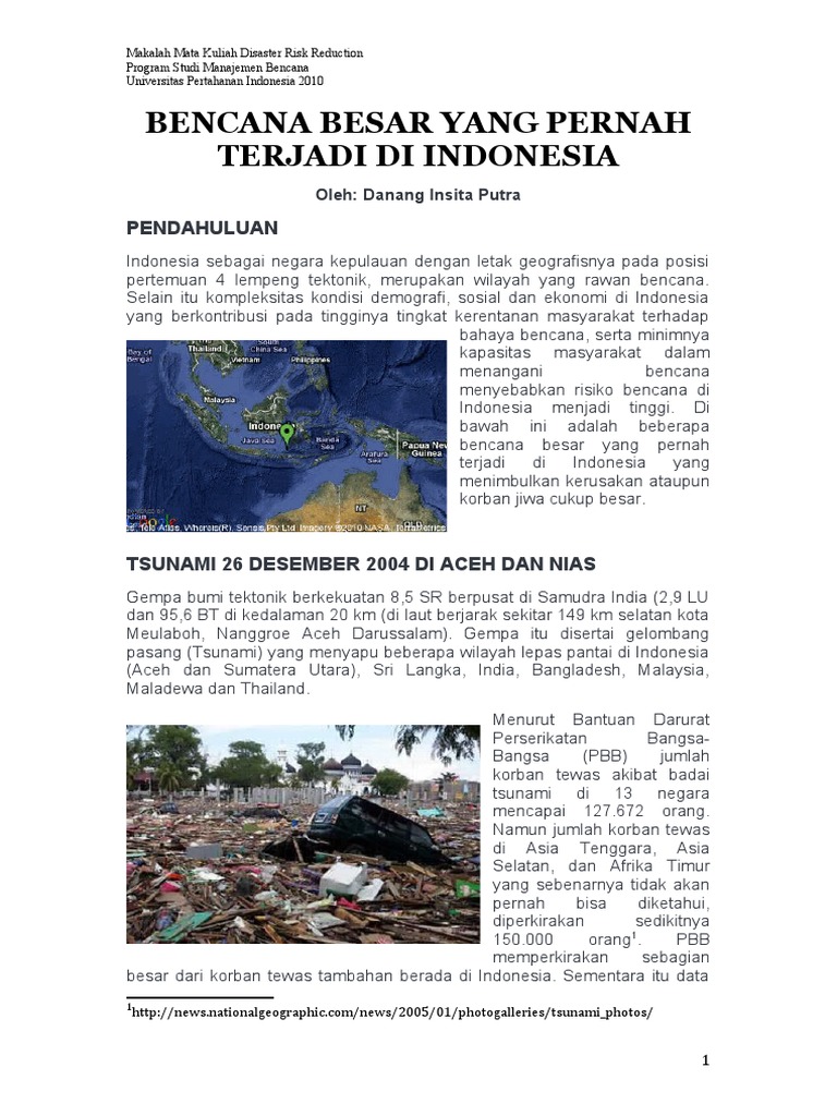 Bencana dari luar angkasa adalah datangnya berbagai benda langit seperti asteroid atau gangguan badai matahari. Banjir di malaysia malaysia sering kita sebut sebagai negeri jiran yang artinya tetangga dekat. Malaysia merupakan salah satu negara yang sering dilanda banjir. Letak malaysia memang sangat dekat dengan indonesia.