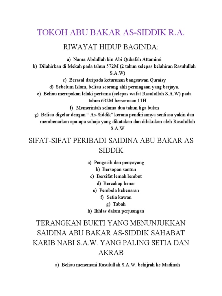 Saidatina aisyah abu bakar biodata saidatina aisyah bin abu bakar nama. Berhijrah dari makkah ke madinah pada tahun 622 hanya beliau seorang yang mengikuti rasulullah s a w. Saiyidina abu bakar digelar as siddiq kerana beliau sering membenarkan apa yang dikatakan oleh rasulullah s a w.