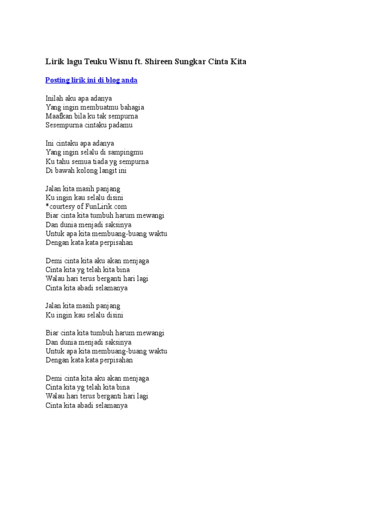 Sia sia sudah kita jalin cinta bila hati slalu berbeda sampai kapan lagi ku harus menahan rasa kecewa didalam dada seandainya kita masih bersatu tak mungkin kan menyatu walau masih ada sisa cinta biarkan saja berakhir sampai disini ruff. Lirik dan chord lagu kartika ahmad albar gito rollies. Lirik cinta terakhir dari ari lasso ini dipublikasikan pada tanggal 9 october 2006 14 tahun yang lalu dan diciptakan oleh irfan aulia ari lasso lagu ini ada di dalam album selalu ada yang didistribusikan oleh label aquarius musikindo. Tiada lagi mayang sari.