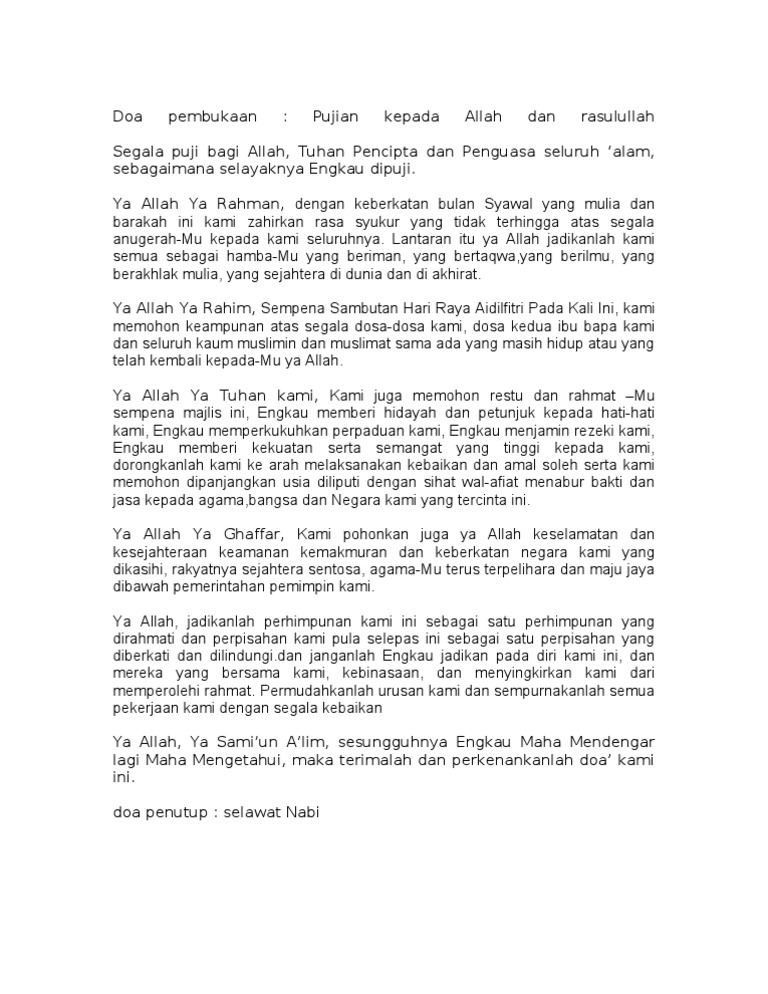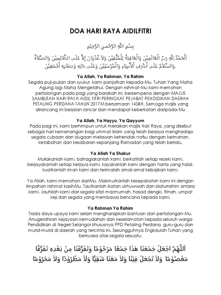 Doa hari raya aidilfitri. Teks khutbah hari raya ini sebagai contoh dan panduan buat kaum bapa dan lelaki sekalian untuk dibacakan pada hari raya aidilfitri ini. Berikut adalah antara doa yang boleh diamalkan ketika datang berziarah ketika hari raya. Ya allah ya tuhan kami. Berikut adalah teks doa yang telah saya susun untuk majlis doa tersebut.