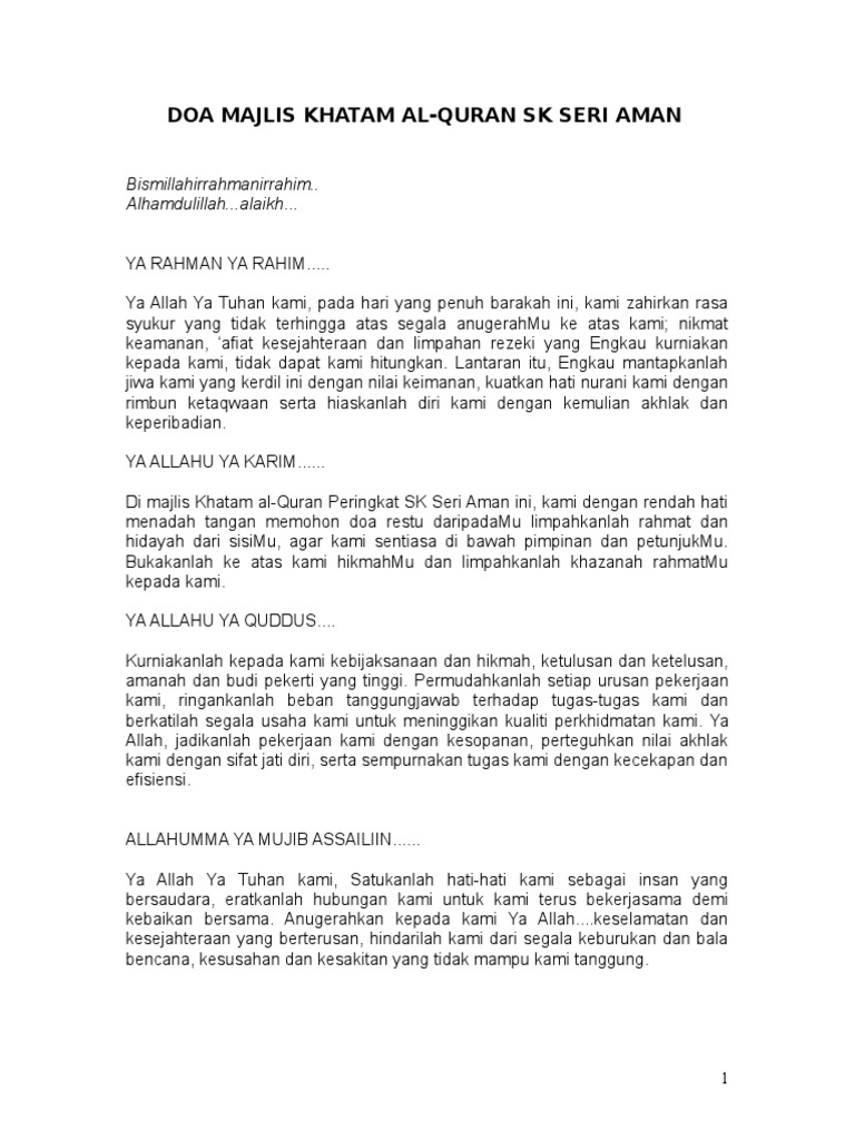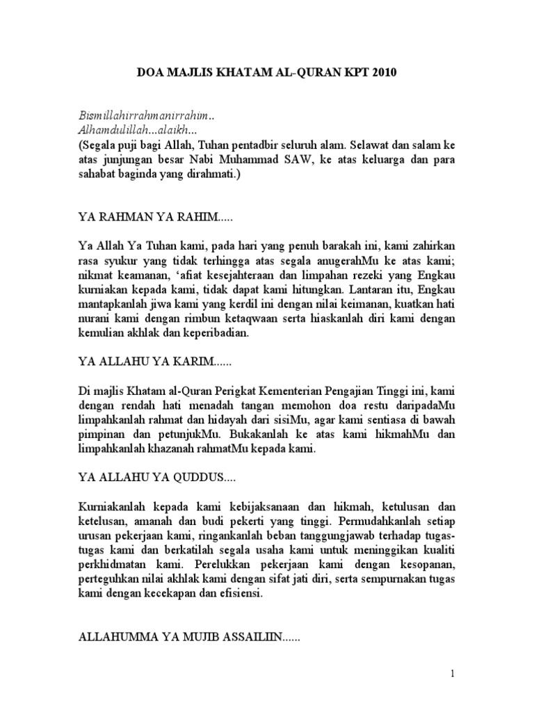 Doa majlis khatam al quran. Terjemah doa khatam quran diambil dari sini maha benar allah. Doa khatam al qur an ini adalah doa khatam al qur an. Doa majlis khatam al quran. Kebetulan saya dapatkan dari sini.