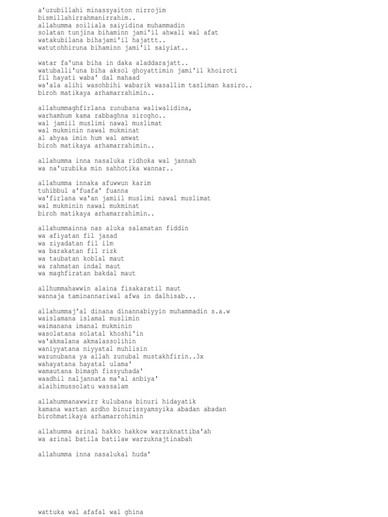 Flag for inappropriate content. Segala puji bagi allah tuhan sekalian alam kepujian yang sesuai mensyukuri nikmat nya dan memohonkan kelebihan nya ya tuhan kami bagi mu segala puji yang selayaknya dengan kebesaran mu dan kekuasaan mu kesejahteraan dan keselamatan atas junjungan kami nabi muhammad saw atas segala keluarga dan. Hasil penelusuran untuk doa selepas solat hazamin pdf. You are on page 1 of 8.