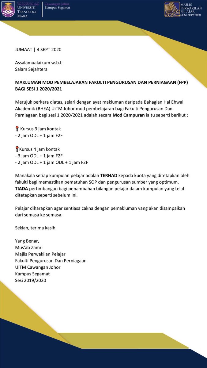 Fakulti pengurusan perniagaan uitm segamat. Senarai bidang kursus ditawarkan di uitm segamat johor berikut ialah bidang kursus atau program yang ditawarkan di uitm segamat johor untuk rujukan anda. Fakulti pengurusan perniagaan universiti teknologi mara cawangan johor km12 off jalan muar 85000 segamat johor darul ta zim. Hairiani abdul hamid tuan puan pengesahan melapor diri pelajar latihan praktik fakulti pengurusan perniagaan uitm cawangan johor perkara di atas adalah berkaitan dan dirujuk. Universiti teknologi mara uitm 40450 shah alam selangor darul ehsan malaysia webmedia uitm edu my tel.