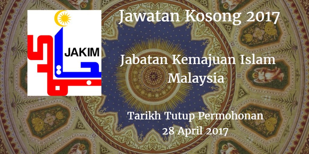 Jawatan kosong di jabatan kemajuan islam malaysia jakim 2017. Jawatan kosong telah dibuka oleh jakim kepada rakyat malaysia yang berumur tidak kurang daripada 18 tahun dan ke atas. Permohonan kekosongan jawatan di jabatan kemajuan islam malaysia jakim 2017 telah dibuka kepada seluruh warganegara malaysia sepanjang tahun 2017. Jawatan kosong jabatan kemajuan islam malaysia jakim 2017 ok.