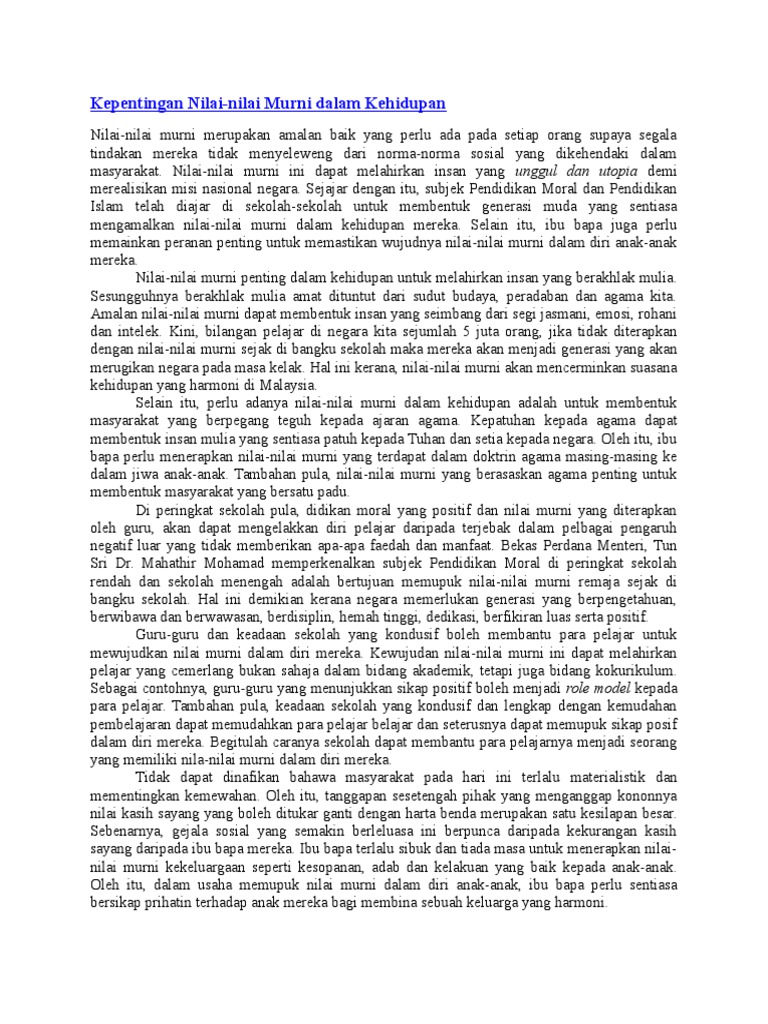 Kepentingan mengamalkan nilai murni dalam kalangan pelajar. Hidup dalam kalangan pelajar. Kajian ini bertujuan mengenal pasti penerapan nilai murni dalam pengajaran guru bahasa melayu sejarah bahasa inggeris dan matematik serta perkaitan dan pengaruhnya terhadap penghayatan nilai murni pelajar. Anda boleh mempelajari karangan ini berdasarkan isi isi struktur peribahasa dan lain lain yang. Penghayatan nilai nilai murni dalam kalangan guru falsafah pendidikan kebangsaan fpk m enekankan konsep melahirkan manusia yang seimbang dari segi e mosi intelek rohani dan jasmani.