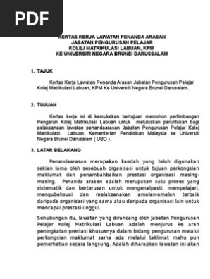 Kertas kerja lawatan penanda aras ke universiti. Kertas kerja lawatan penandaarasan 1. Politeknik sultan idris shah muka 25 dari 32 garis panduan penulisan kertas kerja laporan lawatan akademik versi 1 2 1 0 pendahuluan program lawatan akademik ke astronautic technology m sdn bhd merupakan program yang dianjurkan oleh pelajar semester 6 jabatan kejuruteraan. Tujuan kertas kerja ini di kemukakan bertujuan memohon pertimbangan pengarah kolej matrikulasi labuan untuk meluluskan. 3 0 pendahuluan global outreach programme adalah program yang di inisiatifkan oleh naib canselor utm dato zaini ujang untuk menggalakkan mahasiswa ke luar.