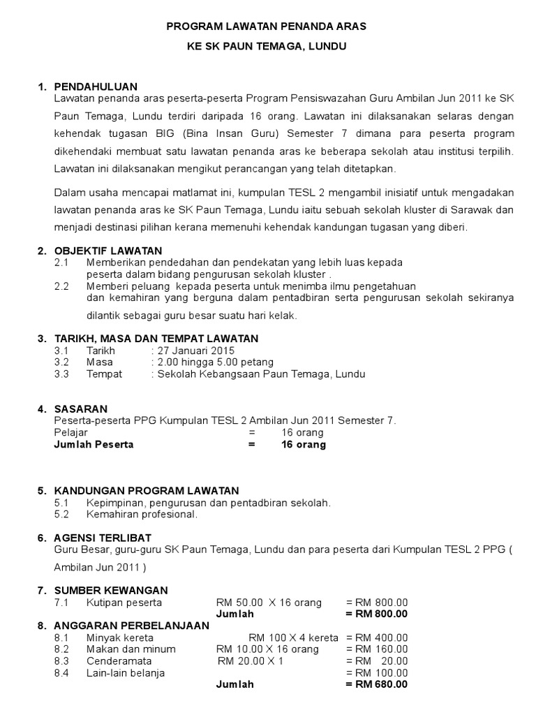 2020 kertas kerja lawatan penanda aras pages 1 7 text. Kertas kerja lawatan penandaaras prs smk cheras ke smk di daerah kluang johor ahli prs saya selalu mengatakan jom cikgu kita pergi sekolah lain pula. Sebenarnya ada banyak contoh lain yang lebih baik tapi ini kk yang biasa ca gunakan sekadar berkongsi buat teman2 guru yang bertanyakan ca tentang proses melaksanakan lawatan terutamanya lawatan ke uss. Kertas kerja lawatan audit docx document kertas kerja lawatan sambil belajar.