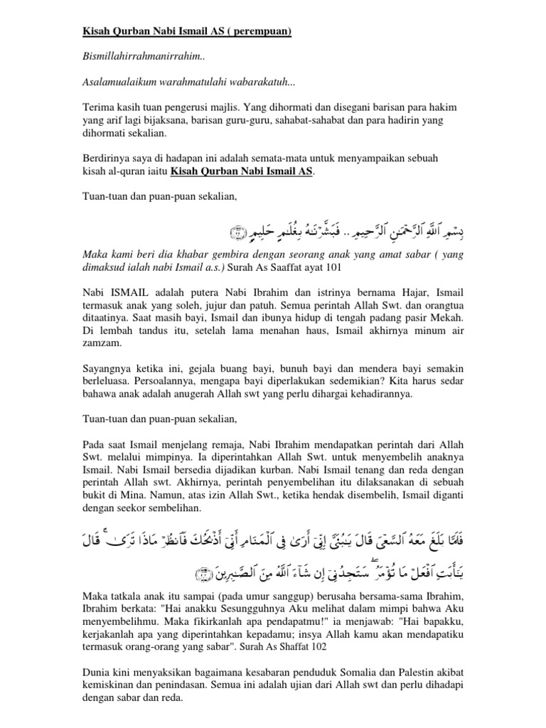 Ismail diangkat menjadi nabi dan ceritakanlah muhammad kisah ismail di dalam kitab al qur an. Sesungguhnya aku akan menjadikanmu imam bagi seluruh manusia. Bangunan kaabah itu menjadi tinggi dan ibrahim makin lemah untuk mengangkat batu. Salah satu kisah nabi ibrahim mengenai perayaan idul adha bersama anaknya ismail.