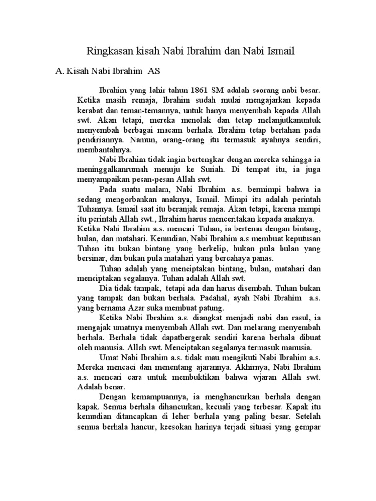 Kisah Nabi Ibrahim Dan Ismail Singkat