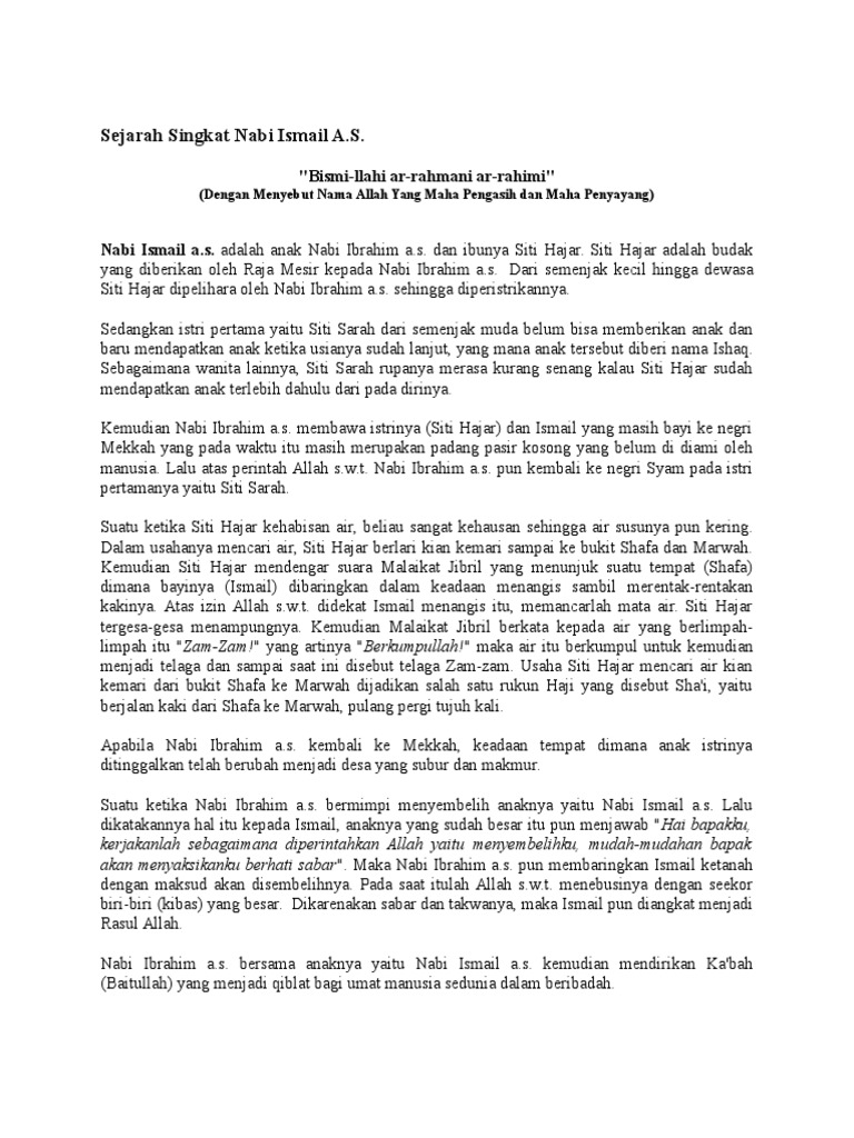 Kisah nabi ibrahim dan ismail singkat. Ibrahim adalah nabi ke 6 dalam islam dan ia bergelar khalilullah kesayangan allah. Artikel sejarah qurban nabi ibrahim dan ismail singkat dan lengkap ribuan tahun yang lalu ada sorang utusan allah yang mempunyai ketaat kepada allah sangat tinggi segala sesuatu yang dilakukannya dipasrahkan hanya kepada allah beliau senantiasa tidak tergantung kepada mahluk. Apa yang dilakukan nabi ibrahim as merupakan ibadah agung yang penuh keikhlasan karena merelakan anak kesayangannya kepada allah swt. Nabi ibrahim as adalah nabi ke 6 yang wajib diketahui dalam islam.