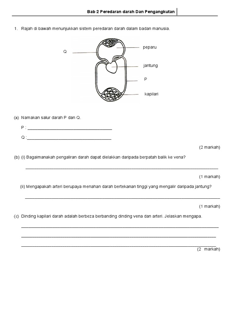 Latihan Sains Tingkatan 3 Bab 2 Peredaran Darah Dan Pengangkutan