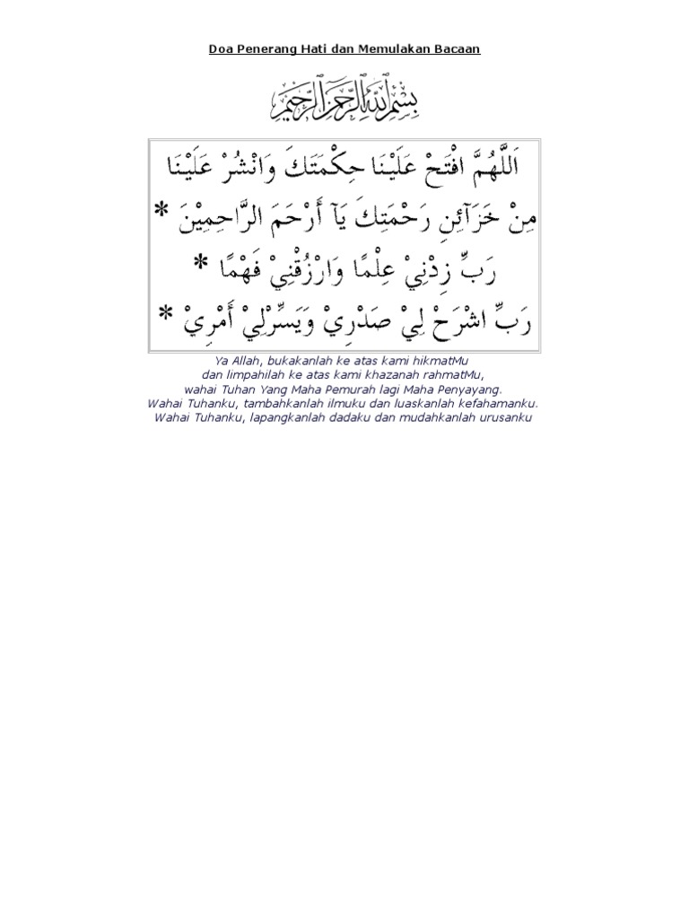 Doa penerang hati untuk mudah belajar dan menghafal assalamualaikum dan salam sejahtera buat anda semua yang sudi datang ke blog saya di sini saya ingin berkongsi dengan anda satu informasi berkaitan dengan doa penerang hati untuk memudahkan belajar serta untuk menghafal entri kali ini saya tulis khas untuk mereka yang masih lagi belajar di sekolah rendah sekolah menengah univerisiti dan. Maksud saya kitab al qur an yang dilengkapi dengan transliterasi dan terjemahannya dan lengkap 30 juz dalam satu jilid. Do a mohon nur penerang hati berbagai amalan habaib do a mohon nur penerang hati.