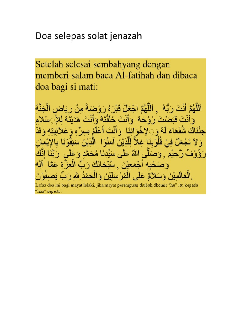 Pdf doa selepas solat jenazah. Setelah selesai salam shalat jenazah kemudian bersama sama membaca surat al fatihah. Ini adalah bahagian yang penting kerana ini merupakan sebab kita menunaikan solat jenazah iaitu mendoakan jenazah. Menurut ulama mazhab asy syafi e seperti imam an nawawi jika mayat sudah dikebumikan dan seseorang itu masih belum melakukan solat jenazah ke atas mayat tersebut maka sunat baginya melakukan solat ghaib untuk mayat tersebut. Tata cara sholat jenazah beserta doa doanya.