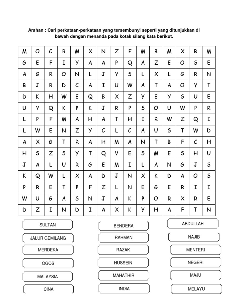 Cara bermain adalah senang jek. Link to this worksheet. Panitia bahasa melayu silang kata warnakan kata kata yang tersembunyi. Jika betullah ya maka kamu berada di kawasan yang betul.