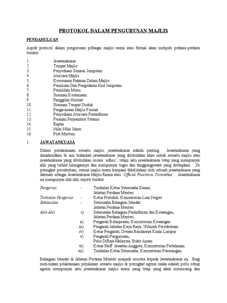 Dengan minat yang mendalam beliau telah menyertai pelbagai kursus dan seminar. Elemen protokol dalam pengurusan majlis 1 jawatankuasa 9 panggilan hormat 2 tempat majlis 10 susunan tempat duduk 3 senarai jemputan 11 juruacara 4 aturcara majlis 12 aturcara pentadbiran 5 pakaian dalam majlis 13 penyambut tetamu 6 kad jemputan 14 raptai 7 menu 15 nilai nilai islam 8 susunan keutamaan 16 post mortem 7. Samsudin mohd said institut aminuddin baki kementerian pelajaran lamaysia genting highlands pahang darul ma slideshare uses cookies to improve functionality and performance and to provide you with relevant advertising. Sebagai panduan semakan jika ada keperluan tambahan.