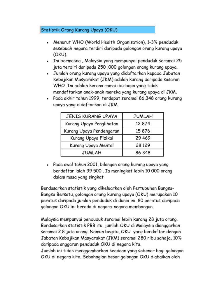 Statistik Oku Di Malaysia 2018